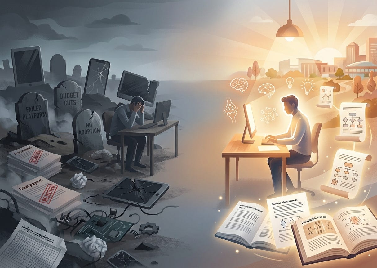 The tech industry worships at the altar of engagement. Daily Active Users (DAUs) and time-on-site are the universal markers of success. In edtech, these same metrics are not just deceptive; they are the wrong goal entirely. An app can be dazzling and addictive, yet be “ultimately hollow,” producing no real learning. As I explored in “The Ultimate Balance,” this is the fundamental bind of edtech: an app can have sky-high engagement while delivering zero lasting learning.